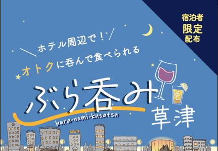 【内容】 草津市内の宿泊施設にお泊りの方を対象に、 参画飲食店で、税込1,000…