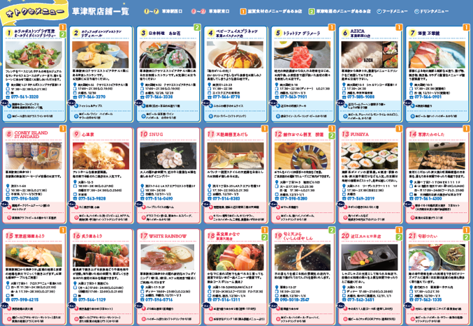 お得に飲んで食べられる「ぶら呑み草津」を実施いたします。